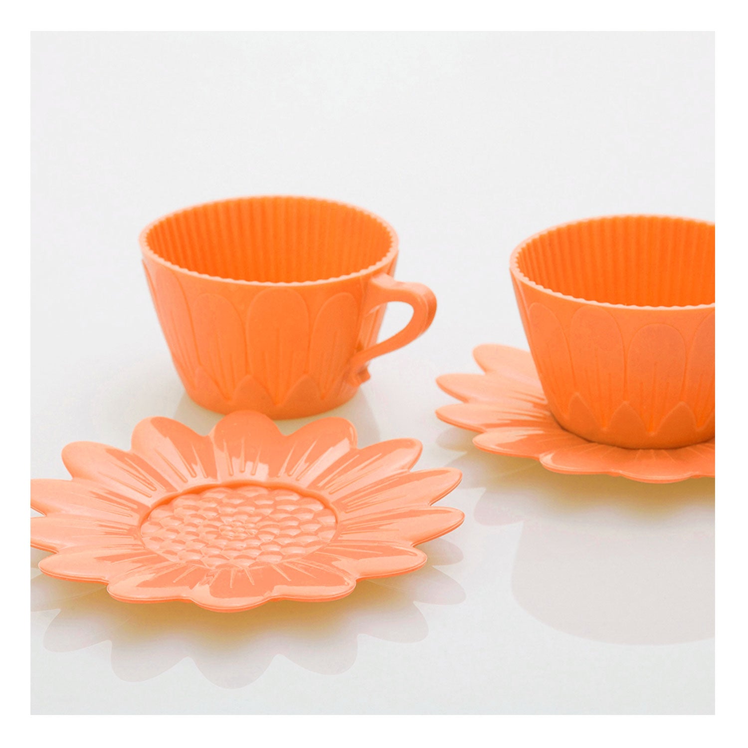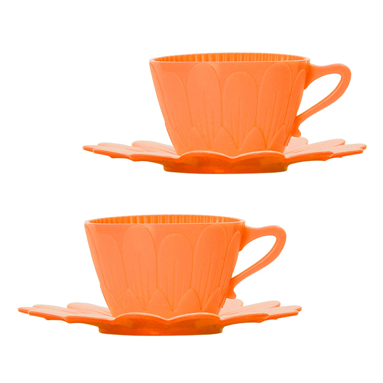 Contém 2 xicaras de 100ml e 2 pratinhos laranja.